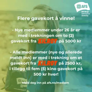 Selger er, AFS Norge Internasjonal Utveksling, Adresse: Herman Foss’ gate 12a, 0171 Oslo, E-post: [email protected], Tlf: +47 22 31 79 00, Org.nr.: 960 546 091, og betegnes i det følgende som organisasjon/organisasjonen. Kjøper er den forbrukeren som foretar kontingentbetalingen, og betegnes i det følgende som medlem/medlemmet.